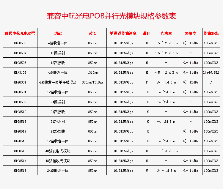 应用领域:光背板传输;板级光互连;高清音视频光传输;Ethernet/ Fiber Channel